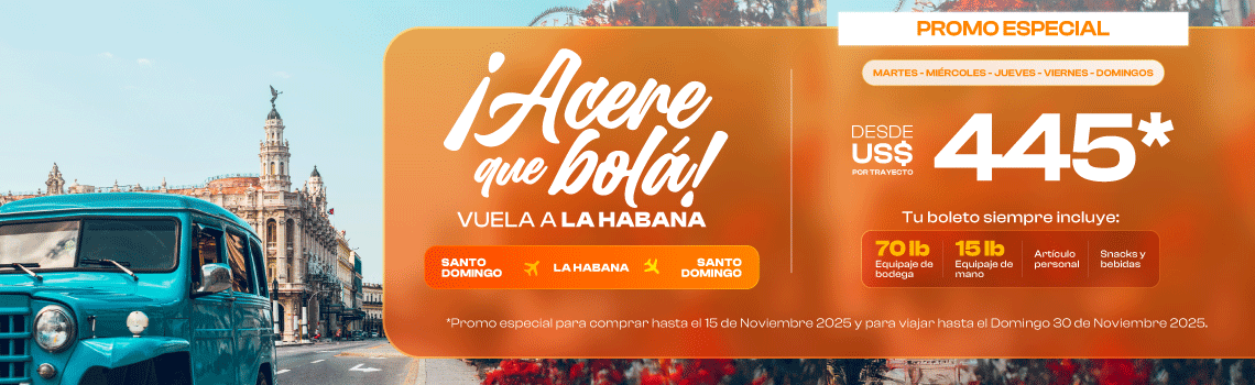 Nous desservons 21 destinations, reliant la République dominicaine, le reste des Caraïbes et le Venezuela. Avec plus de 32 vols par semaine au départ et à destination de l'aéroport international Las Americas.